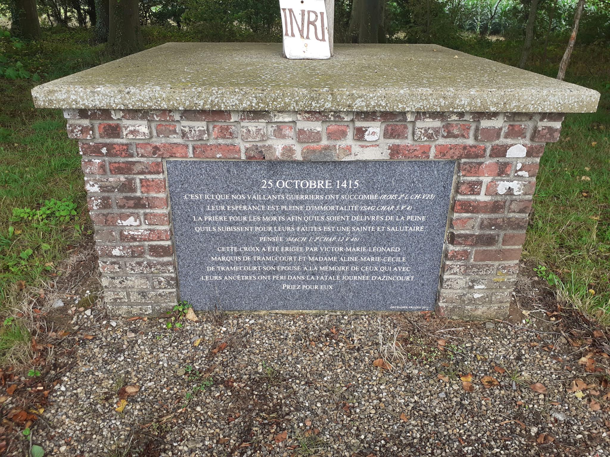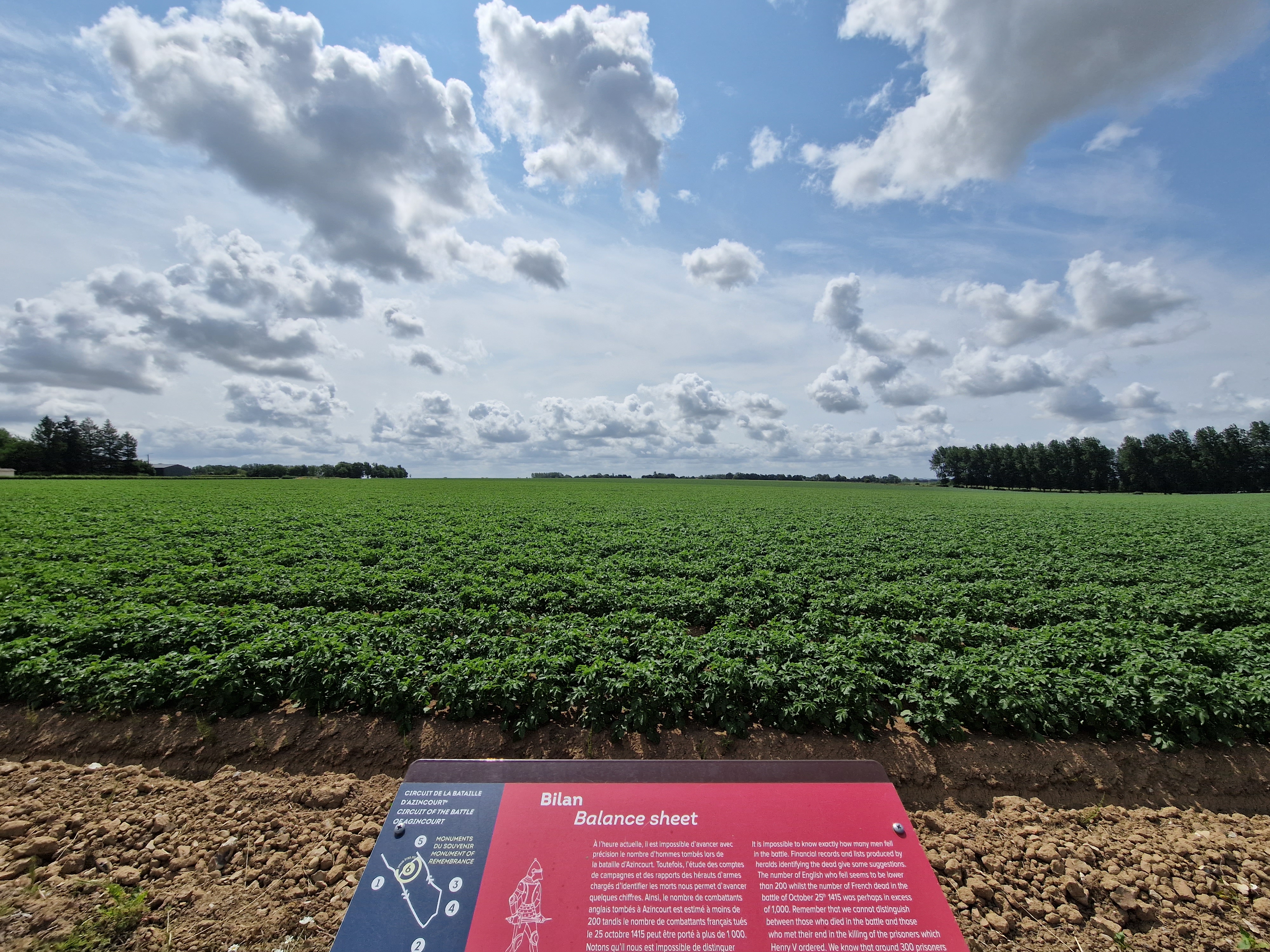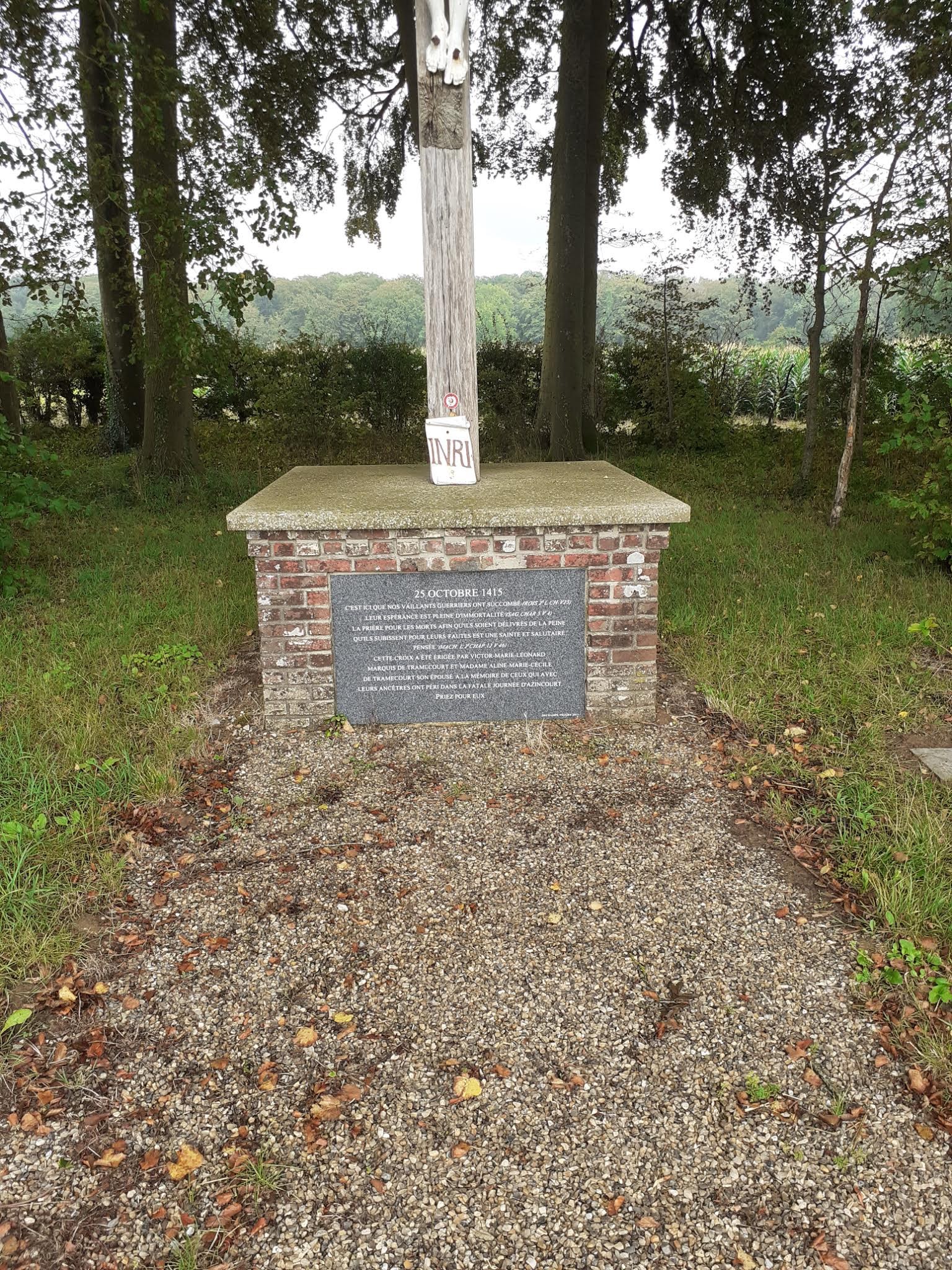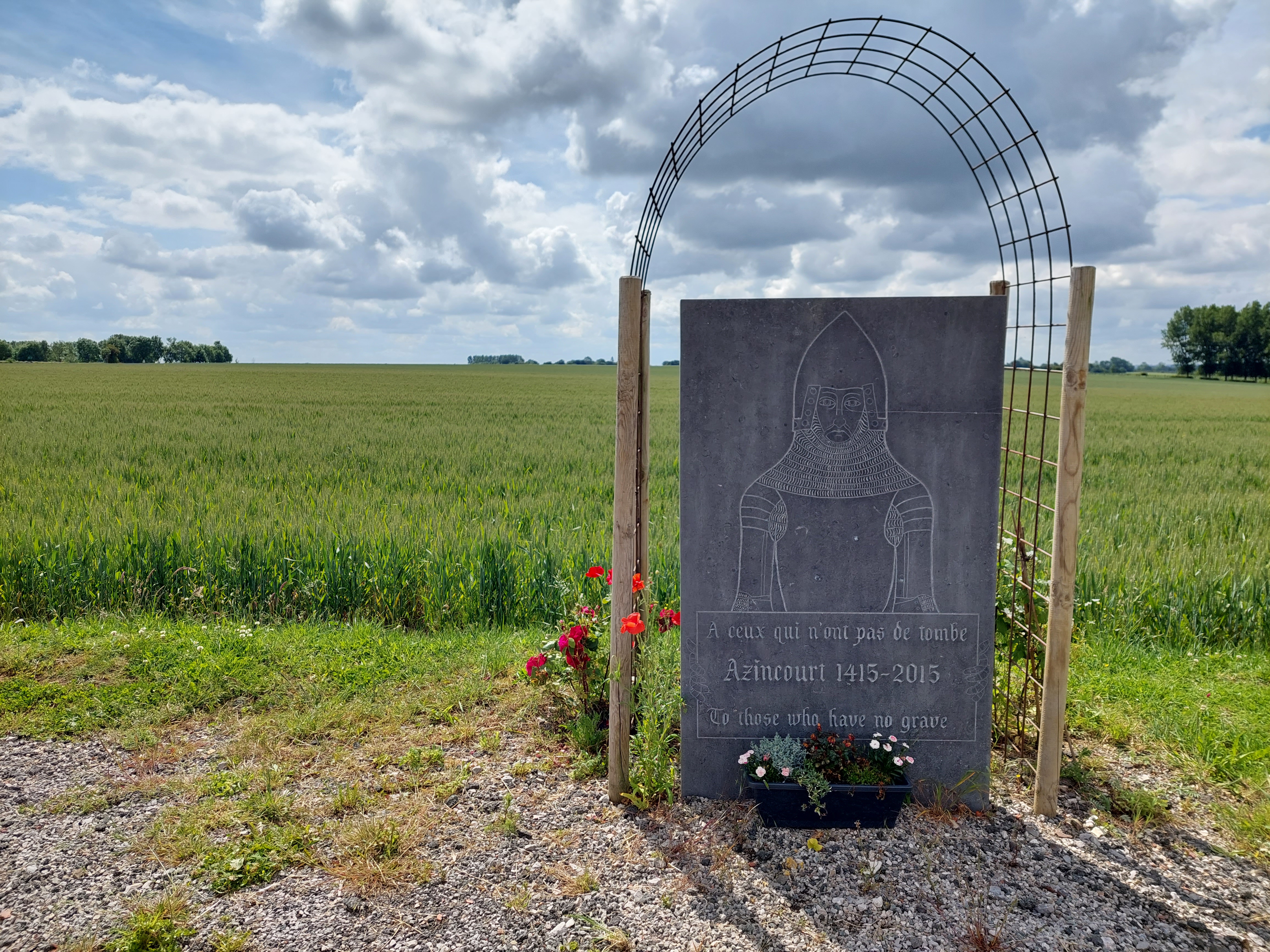 Un grand champ d'agriculteurs. Vide lors de ma visite. Un bosquet d'arbres où étaient enterrés les morts. Vous pouvez le parcourir librement et observer l'une des batailles médiévales les plus importantes d'Europe. Passez du temps à marcher dans les champs et imprégnez-vous de l'air de 1415.